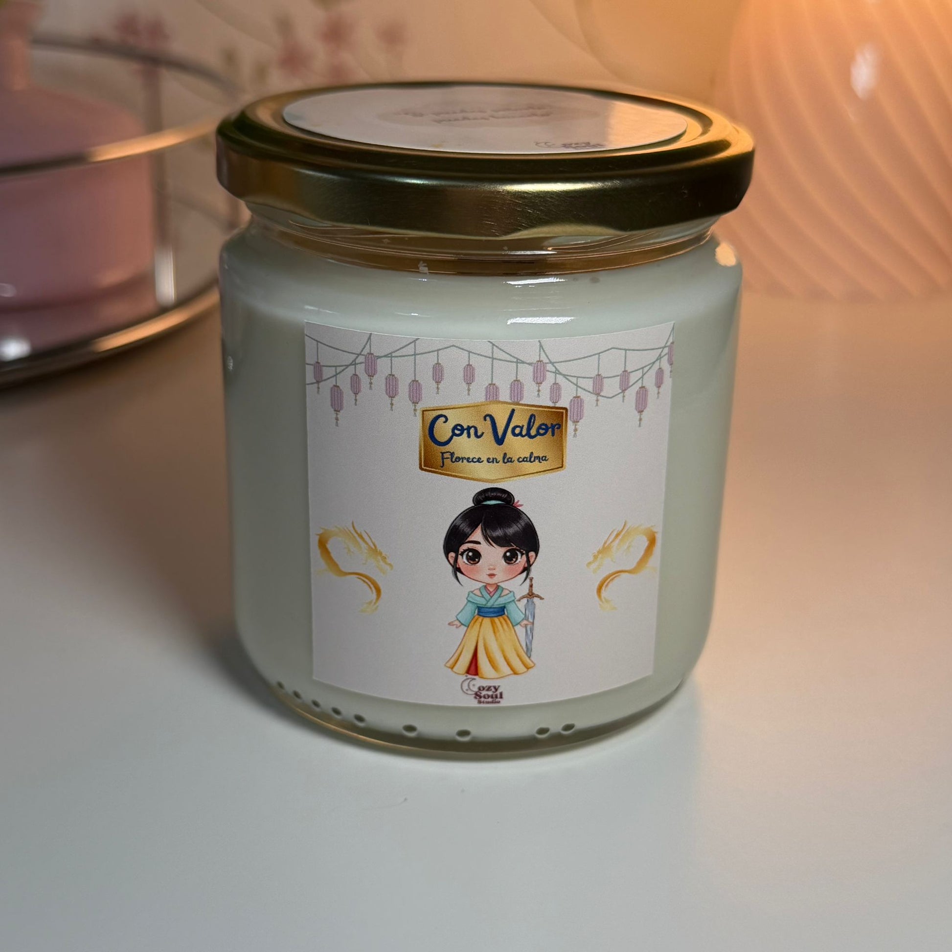 Esta vela transforma cualquier espacio en un rincón de equilibrio y poder interior, donde el aroma floral y suave inspira valentía, serenidad y la sensación de estar lista para cualquier desafío, tal como Mulan lo haría. 🌿✨