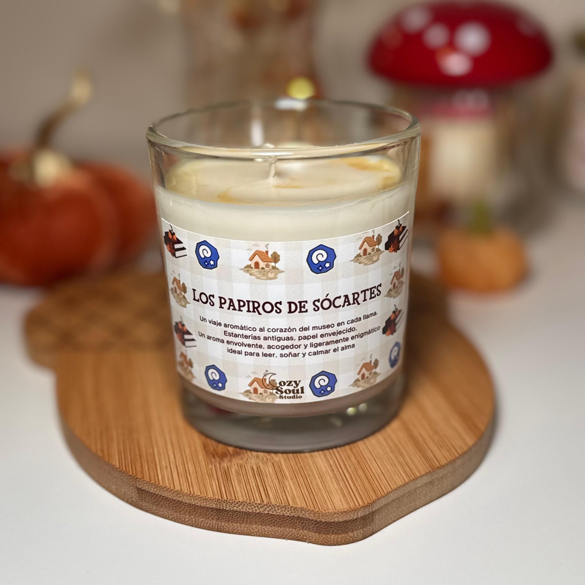 Un viaje aromático al corazón del museo en cada llama. Estanterías antiguas, papel envejecido